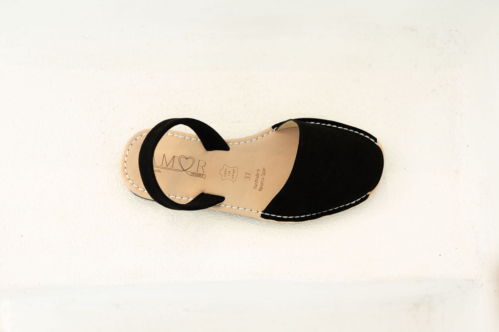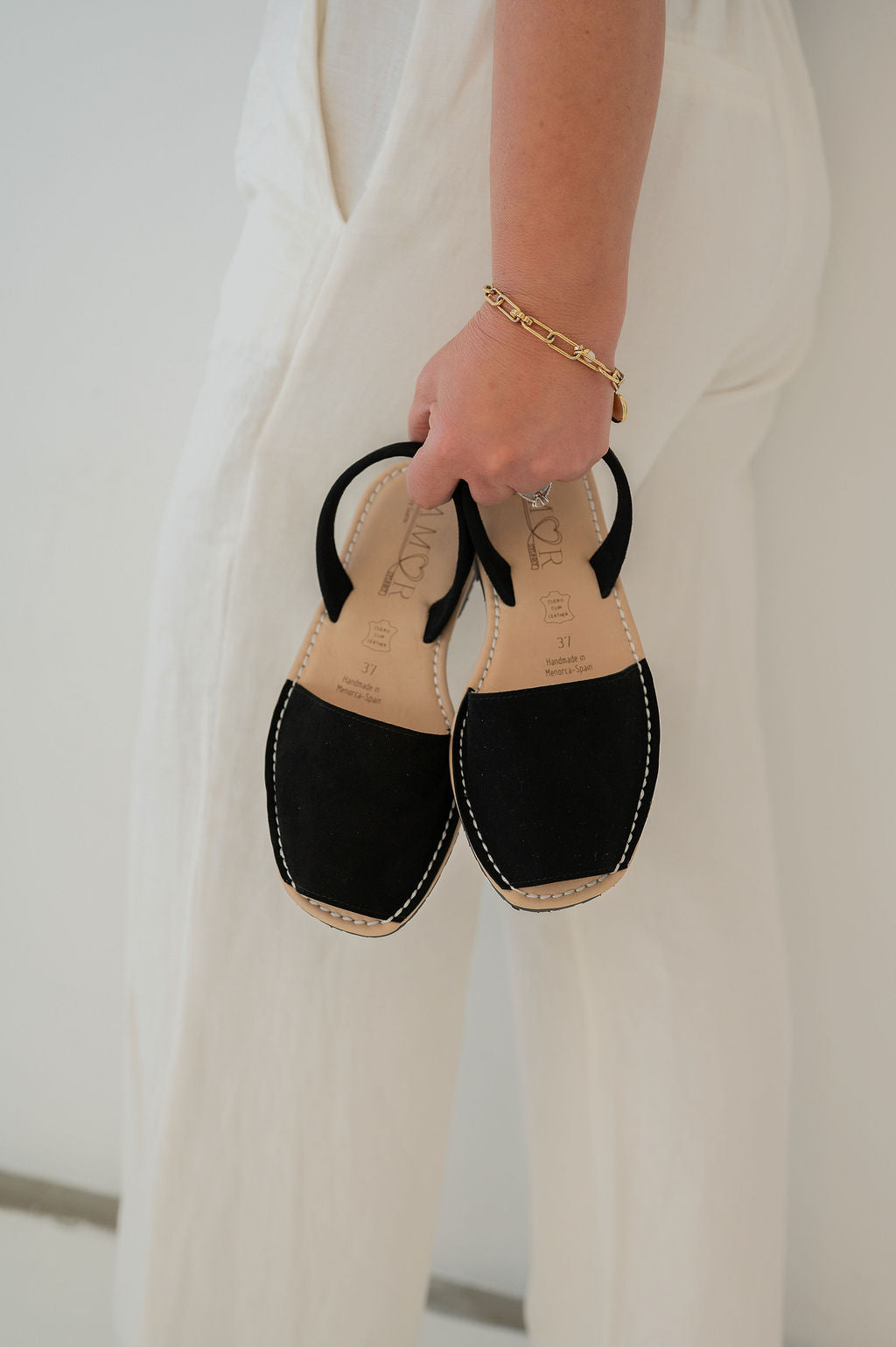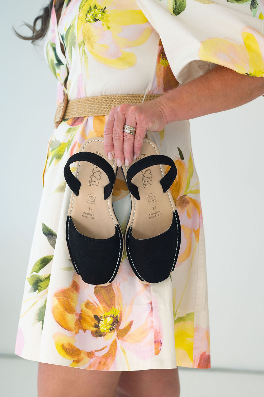 Step into timeless elegance with this classic Avarca, designed for both work and play. Handmade with care, Ebony is crafted from luxurious, soft European suede that gently hugs your feet, offering unmatched comfort with our innovative cushioned sole. This ultra-soft suede provides a sophisticated alternative to traditional leather, making it the perfect choice for all-day wear, even on the most tender feet. Experience the perfect blend of style and comfort today.