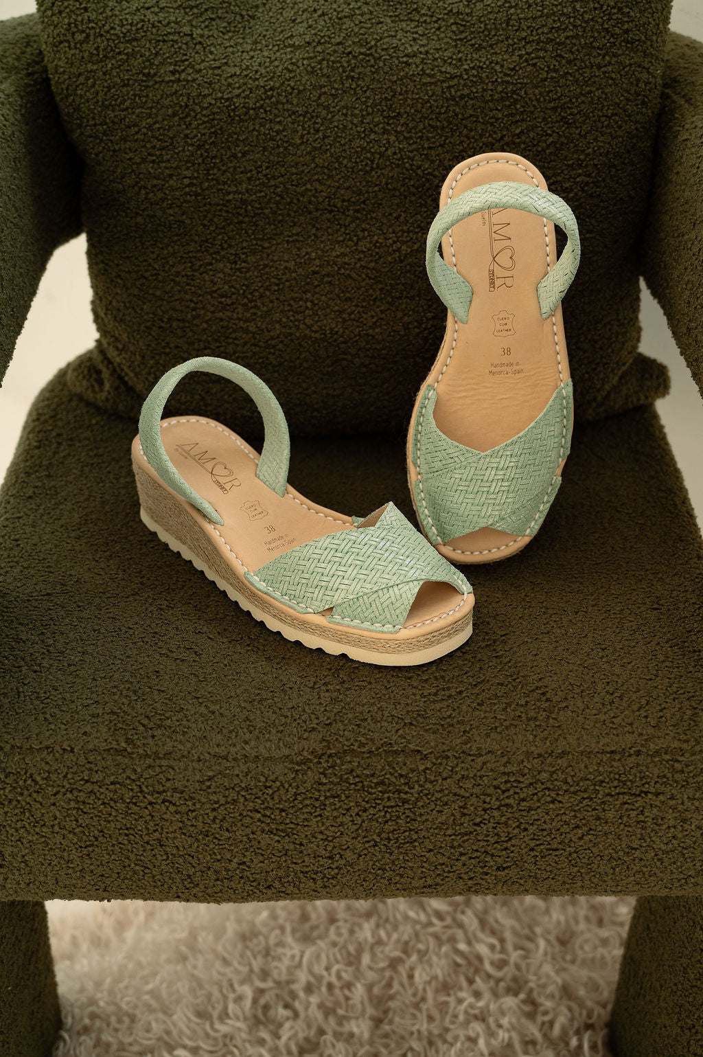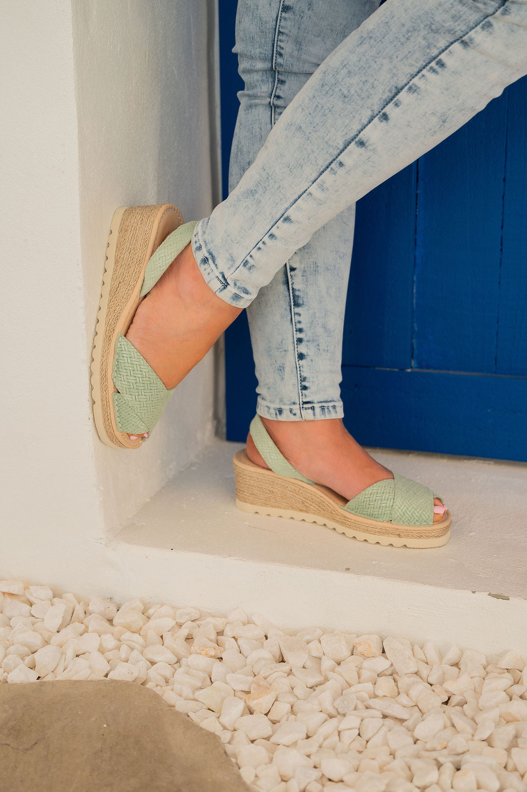 Refresh your wardrobe with our gorgeous Rachael wedge! Finished in a pretty mint green leather with a touch of shimmer, this beautiful sandal is ideal for work and beyond! Rachael has a soft padded footbed for superior comfort and offers some elevation to give you a little extra height. This gorgeous shoe is a versatile wardrobe addition being the perfect partner for floral skirts, dresses, pants and jeans.
